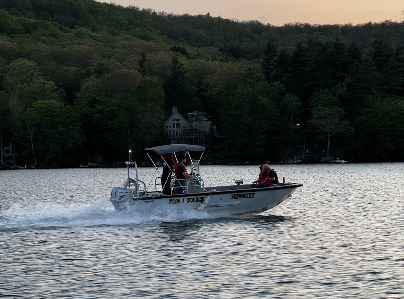 Newbury Boat 2 is a 2011 20 foot Northe River Marine aluminum boat with twin 50 horsepower outboard motors. The boat is a former US Coast Guard buoy service boat acquired in 2022. The boat is used by the fire and police departments for rescue and public service on Lake Sunapee .