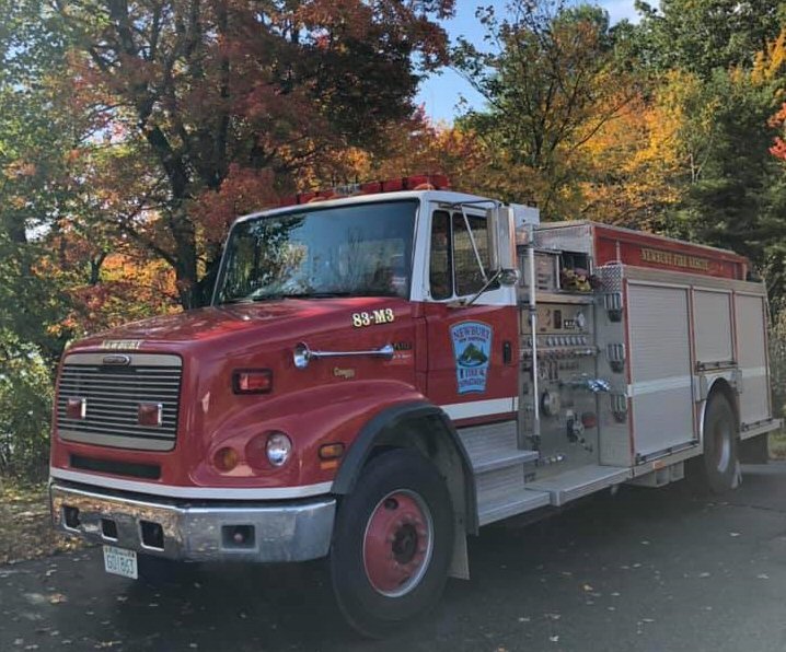 Newbury-Engine 3 is a 2000 Freightliner with 1500 gallon pump and a 1500 gallon tank which serves as the primary mutual aid unit and second response engine.